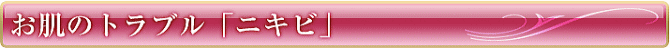 ニキビは食生活とも深い関係があります。大きなポイントはビタミン(ビタミンA・B群・ビタミンE・C)の欠乏と、脂肪、糖分の摂り過ぎです。これらがニキビの誘因ですが、大切なのはバランスのとれた、規則正しい食生活を送るということで、身体の健康は即ち健康な皮膚へと繋がるからです。
