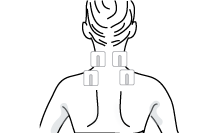 首の付け根と肩に左右2個ずつ貼る 肩甲骨の内側に貼る 首の付け根に貼る