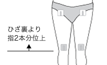 足の付け根とひざ裏より指2本分位上の位置に貼る